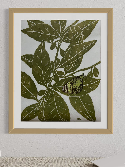 All prints are created from hand-carved linoleum blocks and are individually inked and printed for each print, making each one an original.